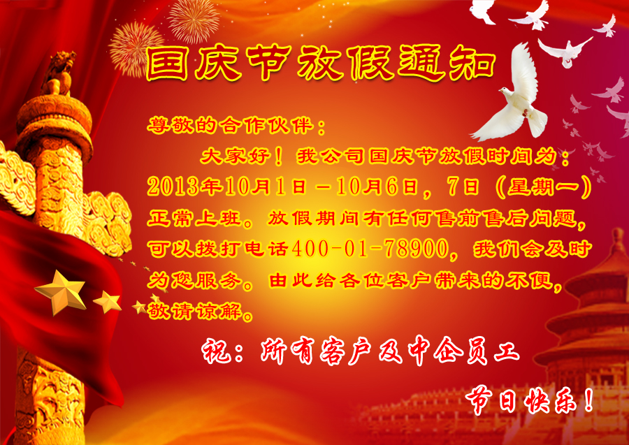 2013年國慶節(jié)放假通知 更新時間:2014-08-20點擊次數(shù):5536次